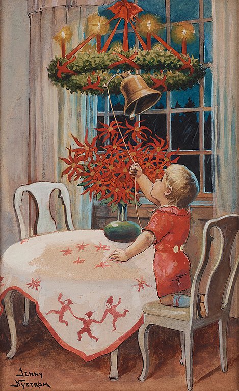 🎄Art – Jenny Nyström (1854-1946), Boy with the New Year Bell